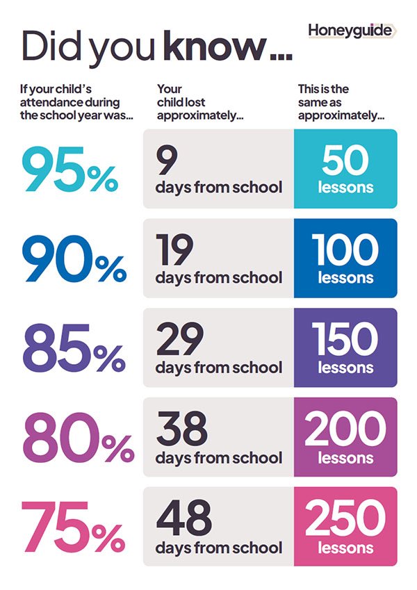 It is also estimated that 17 days missed from school per year will result in 1 whole grade being dropped in a student’s GCSEs.