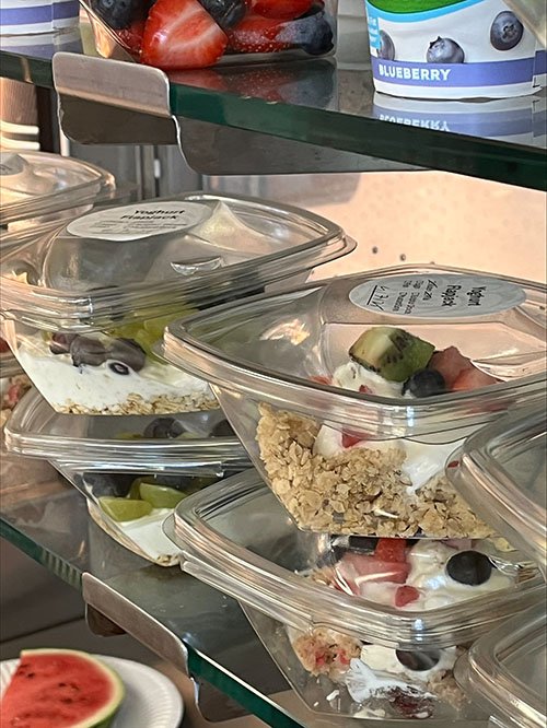 Pizza, cheese panini, hot / cold pasta, jacket potatoes, sandwiches, baguettes