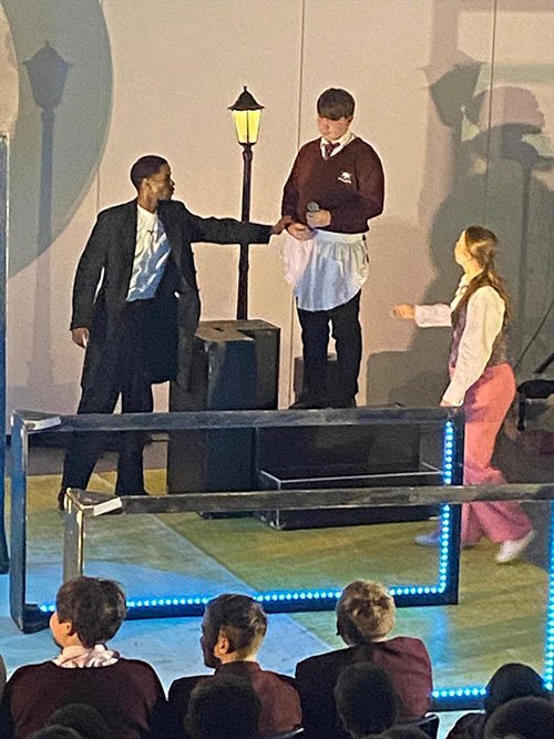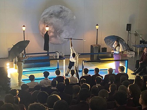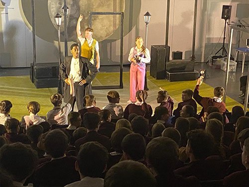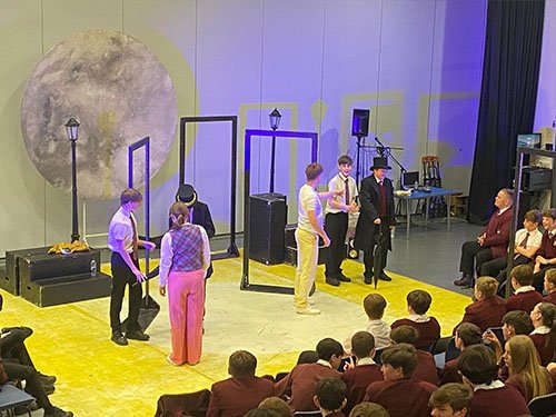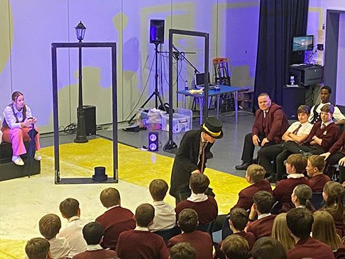 Our Year 9 cohort watched a performance of the Strange Case of Dr Jekyll and Mr Hyde on Tuesday 6th May. The English Department invited Box Clever Theatre in to deliver a performance and workshop, which will benefit the students in further developing their understanding of Robert Louis Stevenson’s seminal gothic horror. This will support them in their knowledge of the text when they are assessed in the next assessment window. The actors provided an exciting performance which not only entertained our students but helped them engage with key episodes and quotations from the novella.