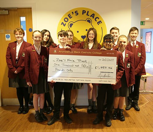 Fourteen students from Archbishop Beck Catholic College visited Zoe’s Place to donate a cheque for £1,050. The college is extremely proud to be able to donate such a substantial amount of money that will go towards the building of the new hospice in West Derby Village.