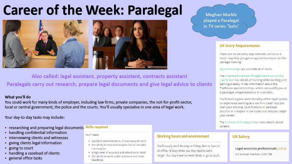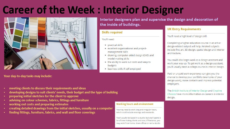 Each day there will be a different career placed on the year group careers page