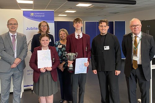 Our students were delighted to win FIRST and SECOND prize in the Archdiocese of Liverpool Public Speaking Competition held on Tuesday 1st July 2025.