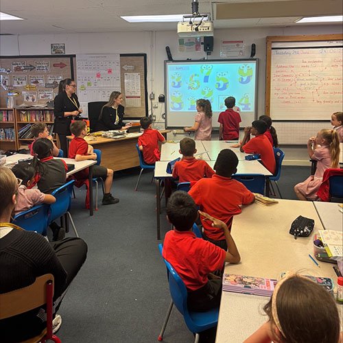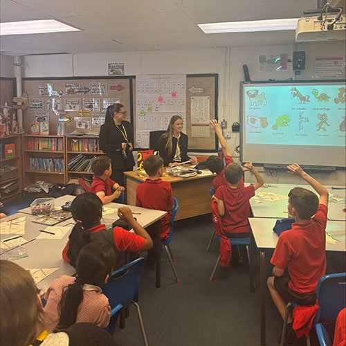 Two A Level Spanish students represented the college as language leaders at Blessed Sacrament Primary School.