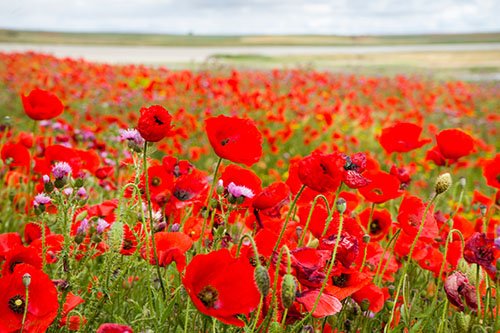 “In Flanders fields the poppies blow Between the crosses, row on row, That mark our place; and in the sky The larks, still bravely singing, fly.” John McCrae